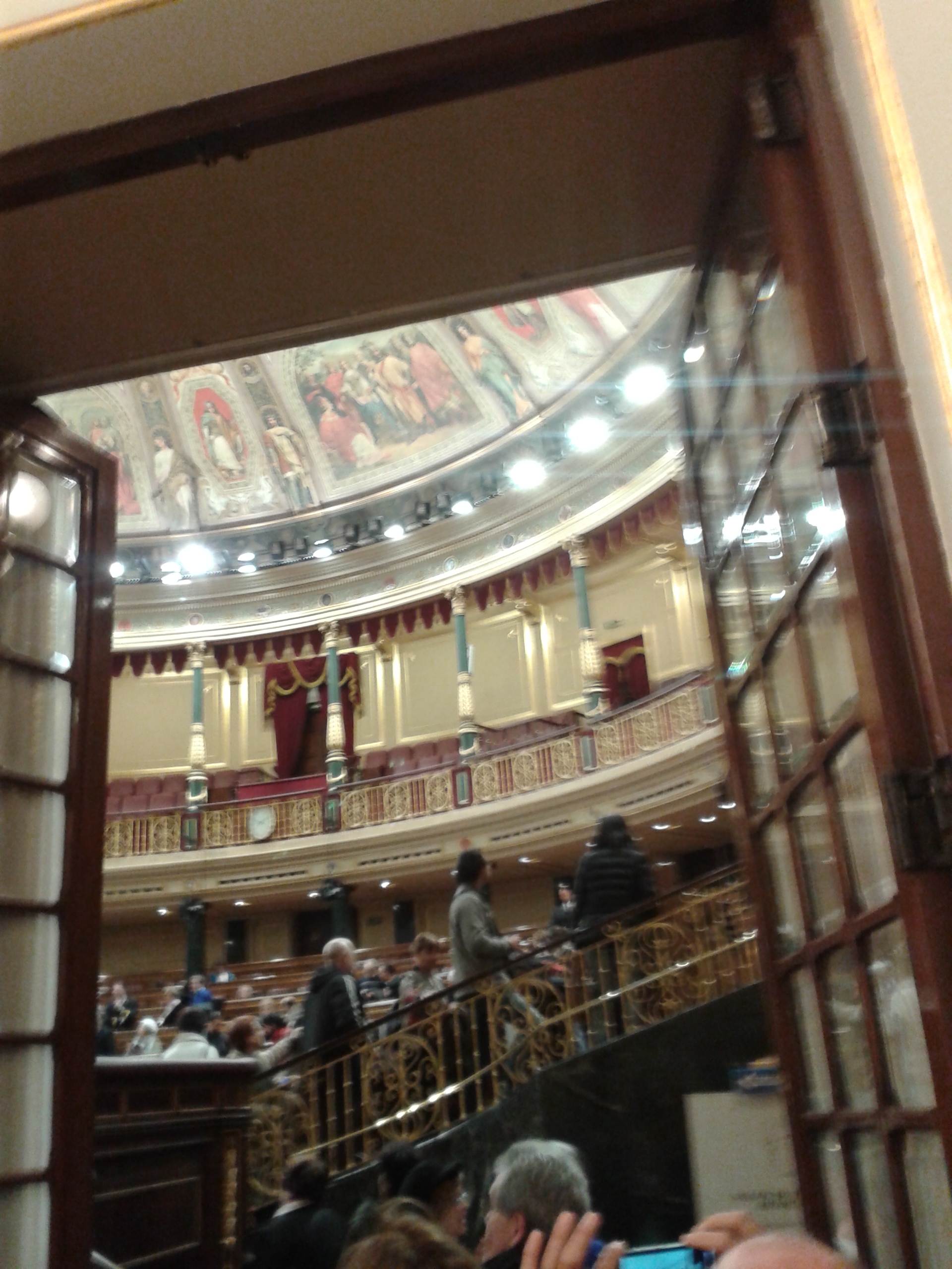 Entramos en la Sala de Plenos que personalmente me impresionaron su altura y su estrechez