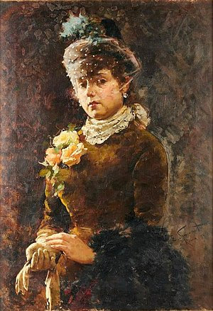 Hacia finales de 1871 nos encontramos con este bello retrato abocetado de una dama del último pintor de la saga de los Madrazo, Ricardo Madrazo y Garreta ,nacido en Madrid en 1852 y fallecido igualmente en la Villa y Corte en 1917.